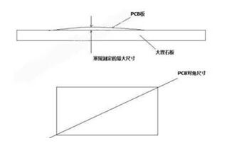 PCB翘曲度的测试方法应遵照IPC-TM-650.2.4.22B里面的规定,首先将PCB板放于平整大理石台面或者厚度大于5MM的玻璃上面,使用测试针规插到翘曲度最大的地方,测量出来尺寸,然后和PCB对角的长度尺寸相除,得到比例大于0.75%,即为翘曲。