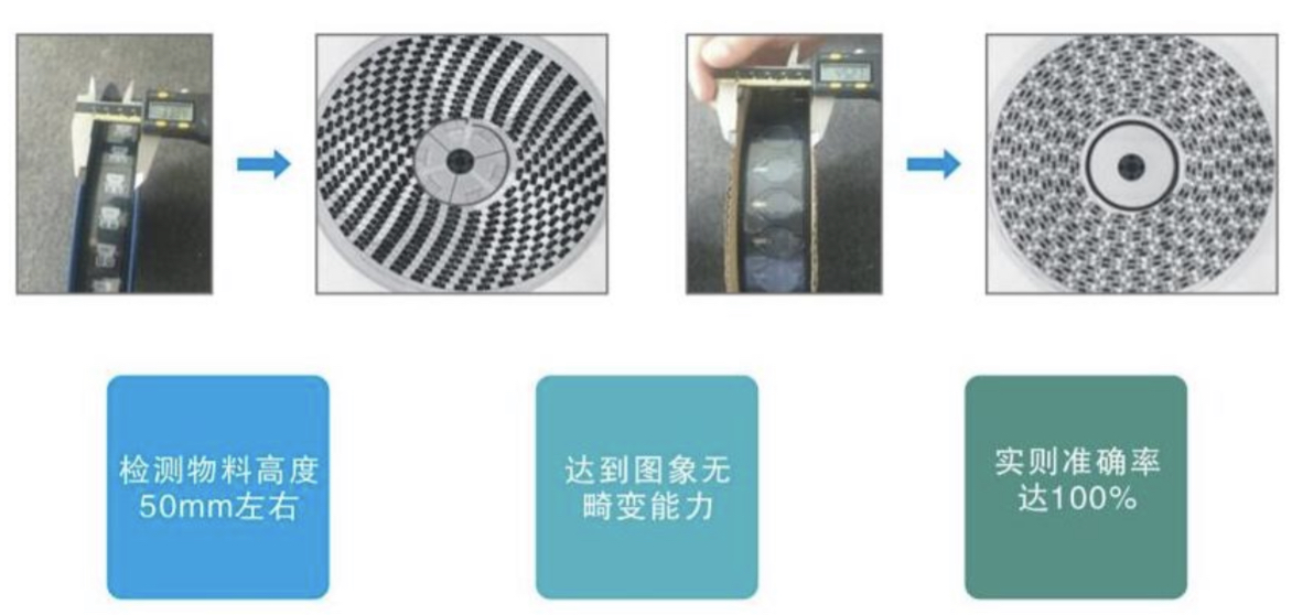 设备能检50mm左右的高度物料,目前市场能达到要求,图像无畸变的能力。