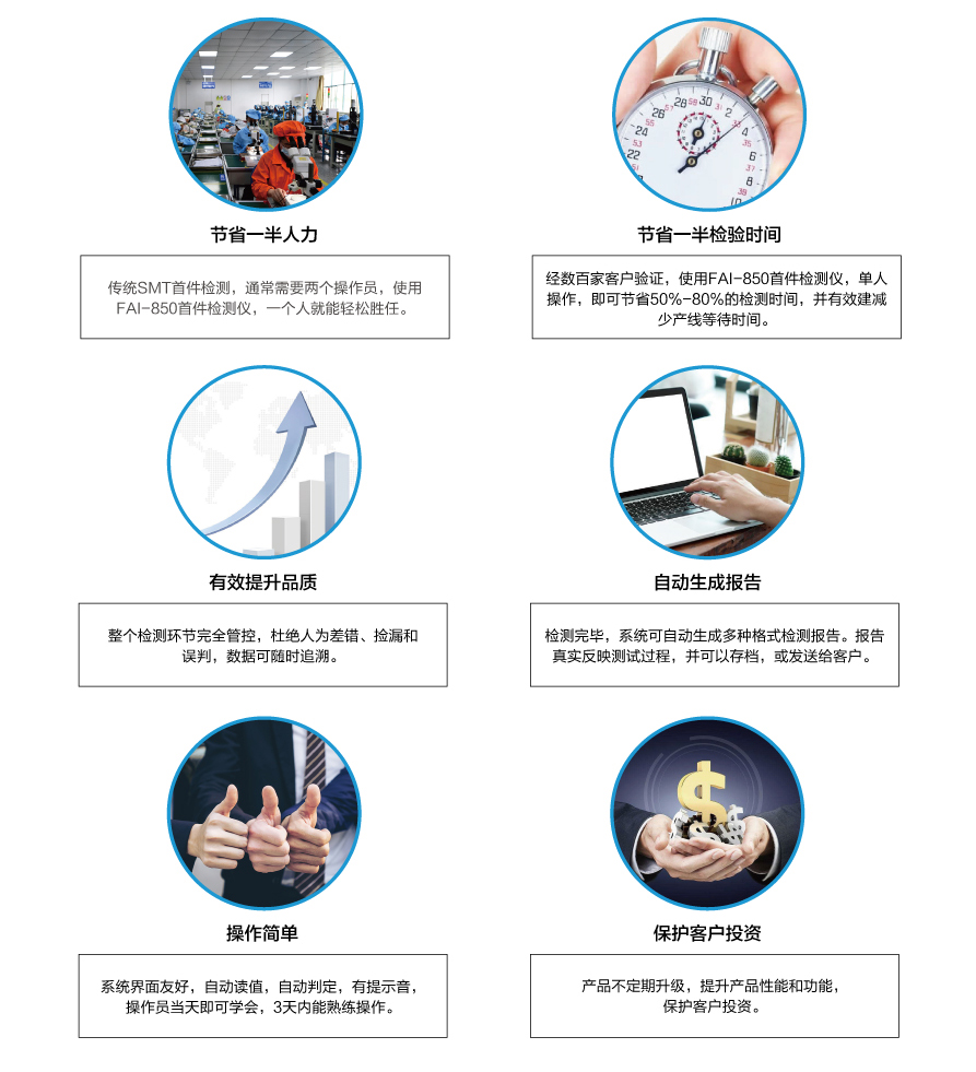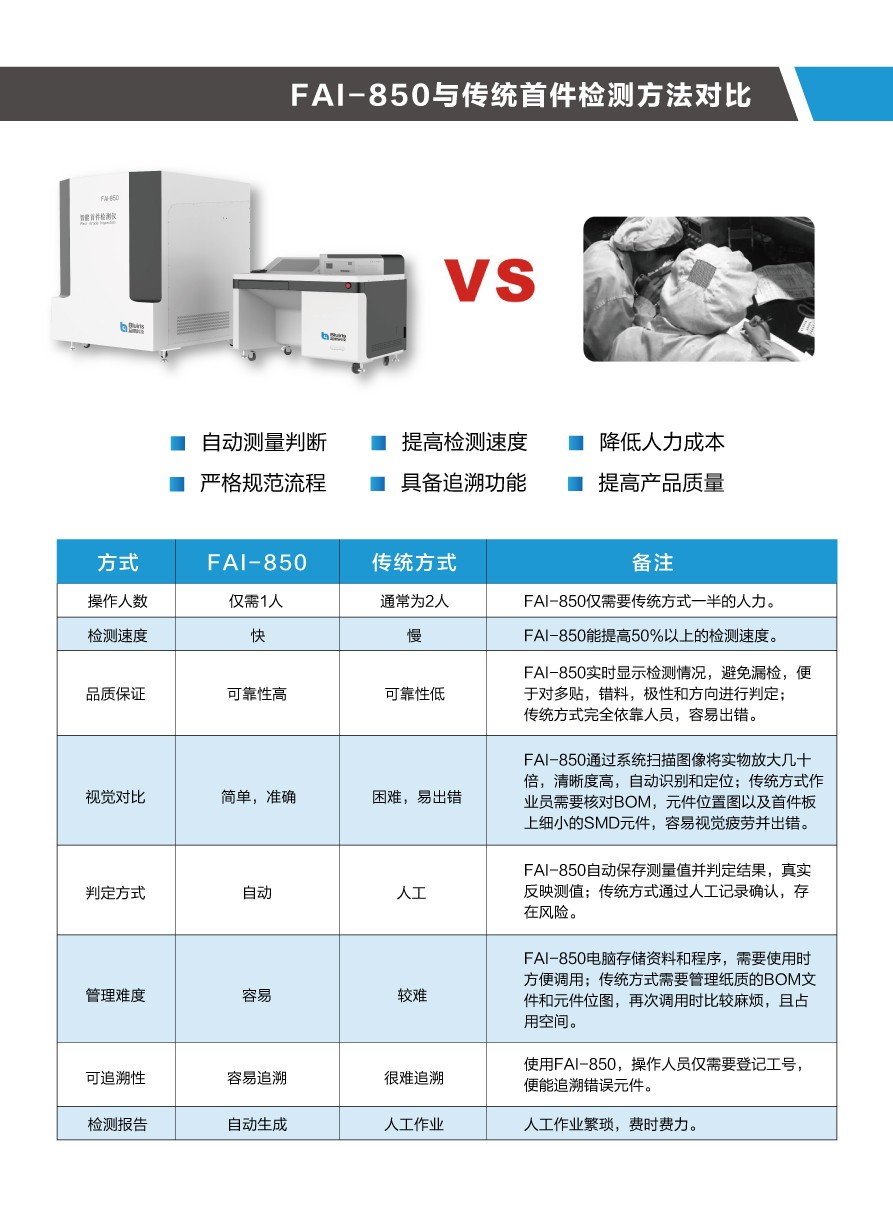 当今SMT电子工厂,多机种、小批量、换线频,使得首件检测的任务越发繁重。传统的SMT首件检测方法,不仅浪费人力,效率低下,整个首件检测过程缺乏管控,品质难以得到保证。针对此难题,深圳市beat365在线唯一官网有限公司首创了SMT首件检测仪,通过不断升级优化,现已研发出第四代首件检测仪FAI-850,具有以下显著优势: